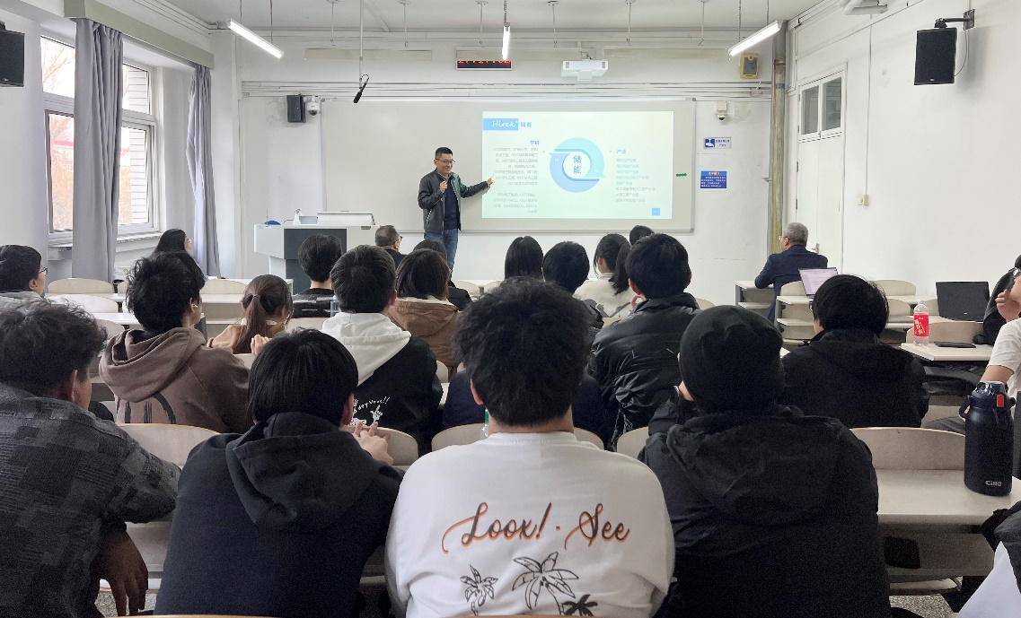 最后,来自北京海瑞克科技发展有限公司的企业导师梁光胜以“储能产业现状分析与发展展望”为题,从产业角度为同学们介绍了储能学科的巨大前景。他提到,全球储能市场的快速增长及储能技术的多元化发展态势带来了储能人才需求的暴增,并展示了近年来储能领域岗位数量、招聘数量及总体平均年薪屡创新高的数据,从就业和读研两个方向帮同学们分析了本科阶段课程选择的侧重点。梁老师希望在场的同学们通过大学四年的学习,都能成长为理想信念坚定,有使命担当、家国情怀、全球视野、开拓创新精神,基础知识扎实、领导力强,面向未来的工程化人才。